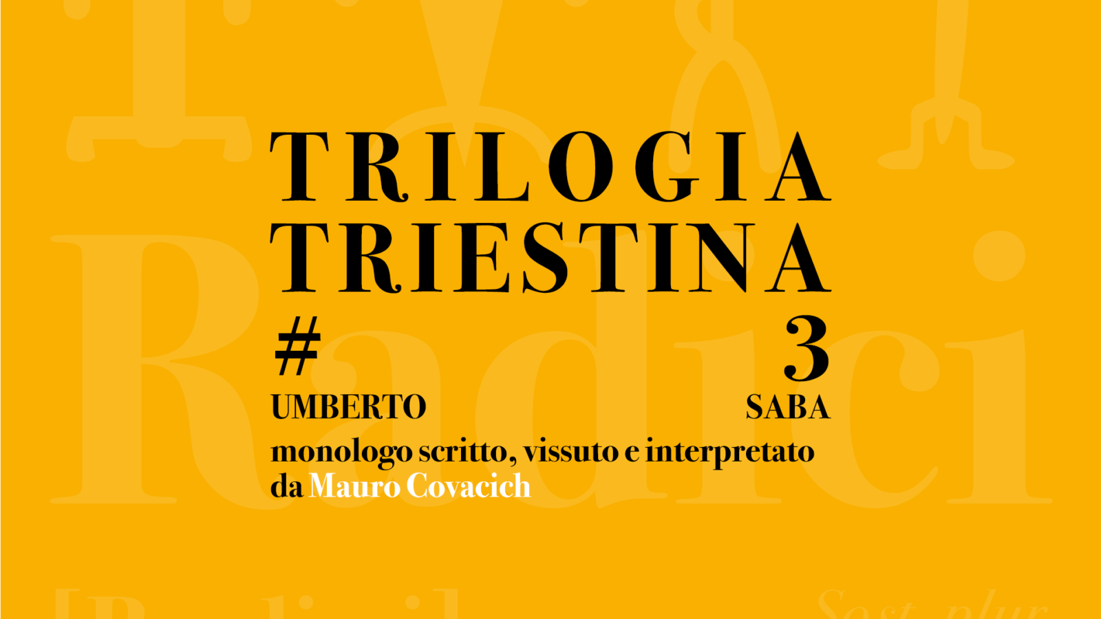 La terza tappa del viaggio letterario tra Trieste e gli scrittori che l’hanno resa immortale è dedicata a Umberto Saba. L’incontro conclude il percorso in tre monologhi per una biografia della città attraverso stagioni letterarie diverse ma simili. Saba dedica i suoi versi più belli a una città che gli sarà sempre stretta, restituendo un ritratto intenso e intimo del capoluogo giuliano.
